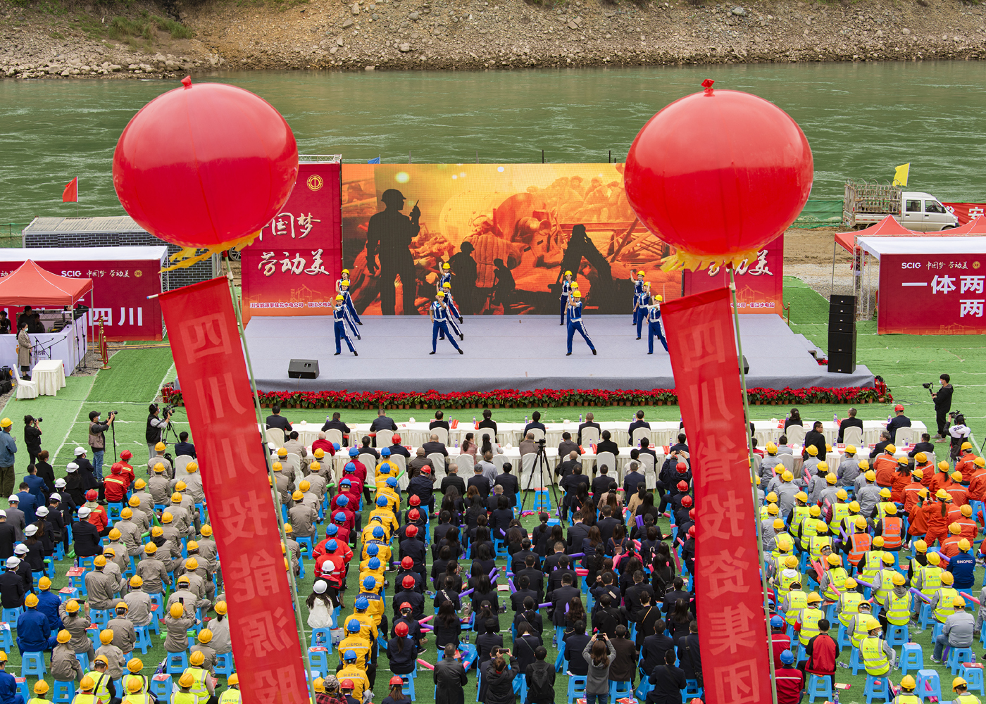 11ÔÂ3ÈÕ£¬ÔÚÆ¯ÁÁµÄ½ðɳ½­ÅÏÒø½­Ë®µçÕ¾C2±êÊ©¹¤ÏÖ³¡£¬ËÄ´¨Ê¡×ܹ¤»áÒÔ¡°ÖйúÃΡ¤ÀͶ¯ÃÀ¡±ÎªÖ÷Ì⣬×éÖ¯¶«·½ÜÔÀò¹úÀÖÍŵÄÒÕÊõ¼ÒÃÇΪһÏßÀͶ¯ÕßÃÇÏ×ÉÏÁËÒ»³¡¾«²Ê¾øÂ×µÄÊÓÌýÊ¢Ñ磬±¾´ÎÑݳöͬ²½¾ÙÐÐÁËÍøÂçÖ±²¥£¬Áè¼Ý10ÍòÈ˾ÙÐÐÍøÂçԢĿ ¡£