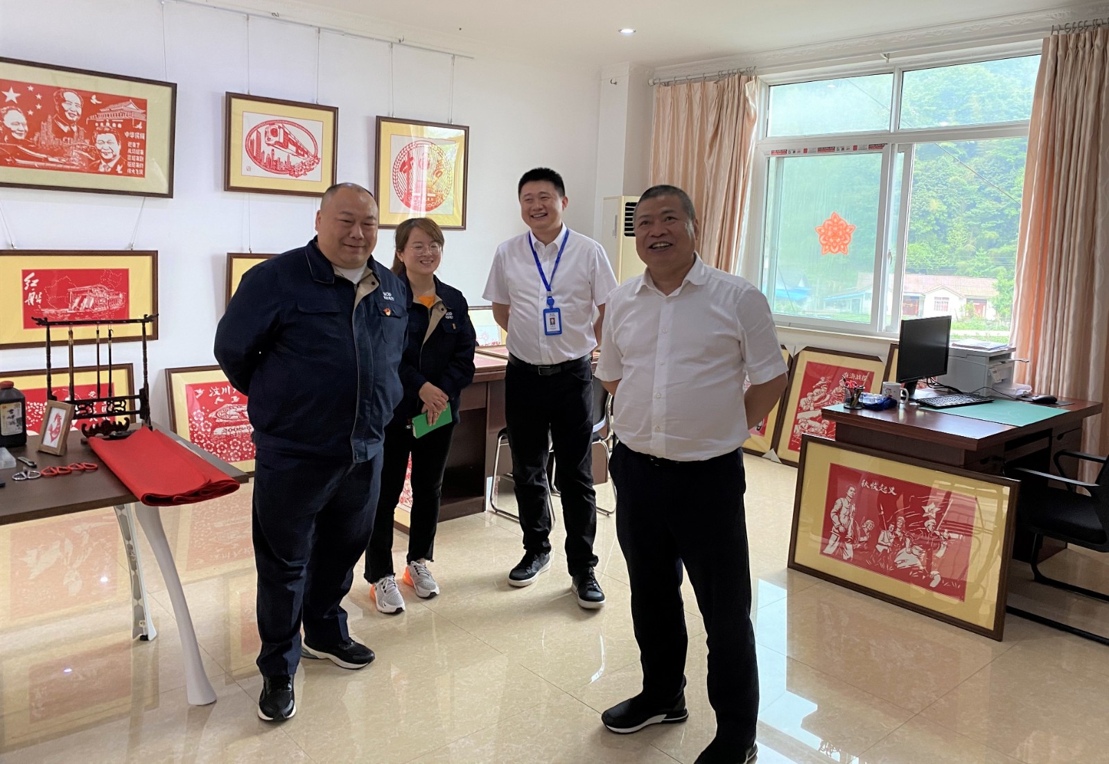 在“小庄事情室”,杨洪一行现场审查了剪纸作品创作希望情形,对公司向导班子及剪纸展相关事情职员的配合起劲体现了充分一定,对庄丛灿及其团队体现了亲热的慰问,并要求公司在后续事情中按集团公司指示,高位谋划、高效推动、高质量完成好剪纸展准备事情。