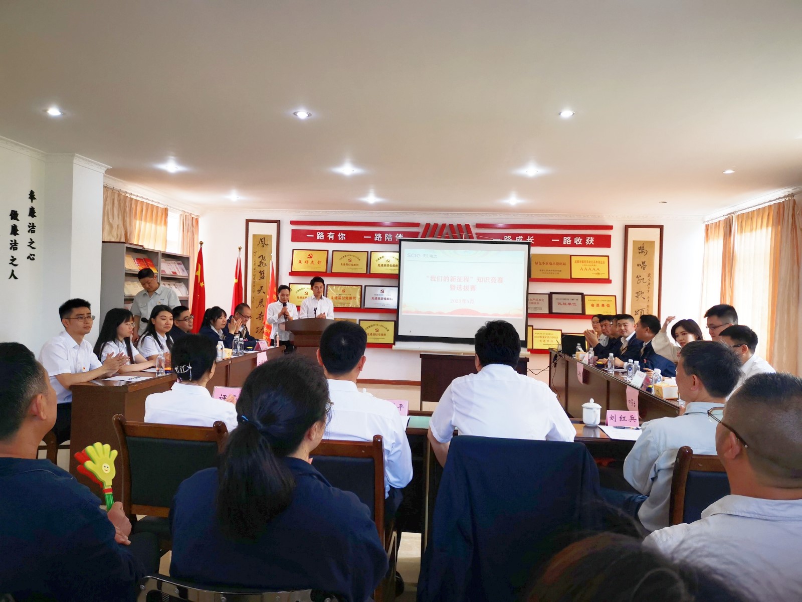为深入学习贯彻党的二十大精神和省委十二届二次全会精神,起劲备战由省委宣传部举行的“我们的新征程”——学习贯彻党的二十大精神和省委十二届二次全会精神知识竞赛,5月4日,“我们的新征程”知识竞赛暨选拔赛在天彭电力举行。角逐由人生就是博能源主理、天彭电力承办,人生就是博能源党委副书记、工会主席冉兰平;人生就是博电力党委书记、董事长杨涛,党委副书记杨鑫;天彭电力党总支书记、总司理刘红兵出席。