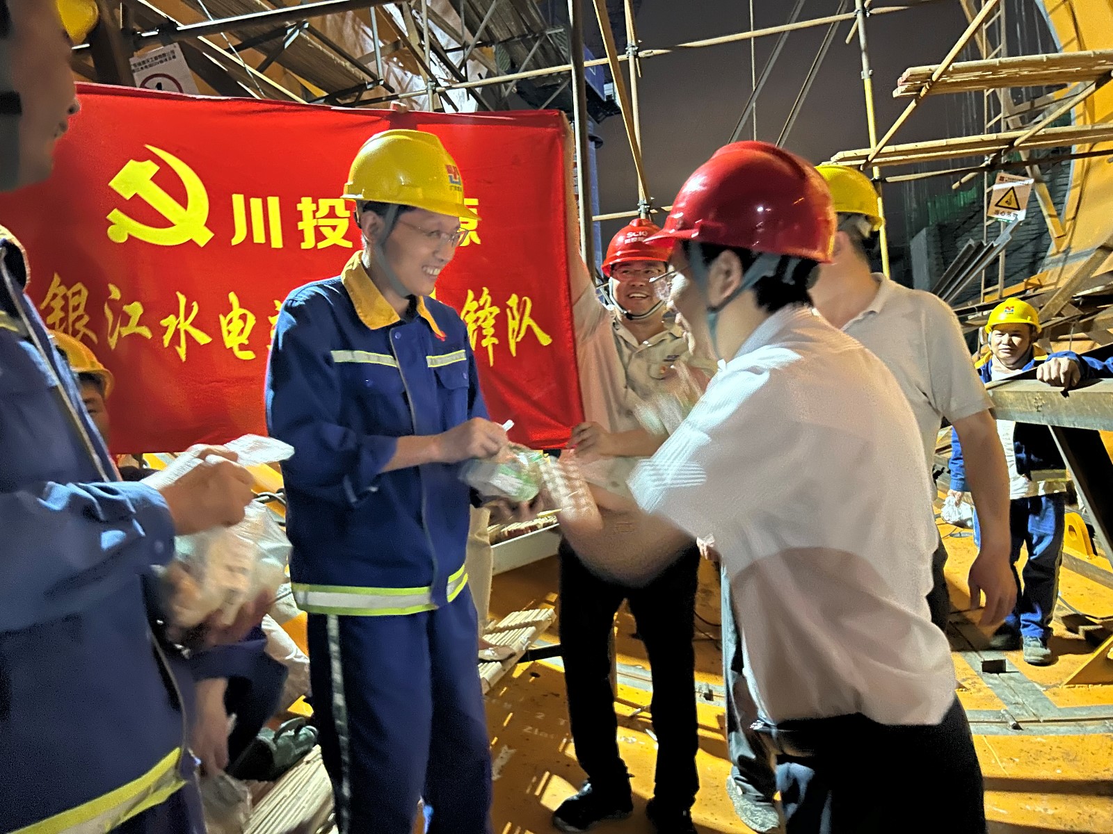 ½ÚÈÕµÄÒø½Ë®µçվʩ¹¤ÏÖ³¡£¬´ó°Ó»ìÄýÍÁ½½Öþ¡¢³§·¿Î²Ë®¹Ü»úµç×°ÖᢻìÄýÍÁ°èºÍϵͳµÈ¸÷²¿Î»Ò»Æ¬Ã¦Âµ£¬Îª°´ÆÚʵÏÖ¸÷Ïî½ÚµãÄ¿µÄ£¬800ÓàÃû½¨ÉèÕßÒÀÈ»·ÜÕ½ÔÚÒø½Ë®µçվʩ¹¤ÏÖ³¡¡£Ò¹ÍíµÄ¹¤µØ¸üÊǵƻðͨÃ÷£¬ÍíÉϾŵ㣬ÈËÉú¾ÍÊDz©ÄÜÔ´¸±×Ü˾Àí£¬¹«Ë¾µ³×ÜÖ§Êé¼Ç¡¢¶Ê³¤ÐìТ¸ÕÏòµ¼¹«Ë¾µ³Ô±ÏÈ·æ¶Ó¡¢×ÔÔ¸Õß·þÎñ¶Ó£¬ÉîÈë»ìÄýÍÁ½½Öþ²ÖÃæ¡¢Î²Ë®¹Ü¡¢°èÔÓÂ¥µ÷ÀíÊÒ¡¢·ÀÑ´Öµ°àÊÒ¡¢±äµçÕ¾¡¢±£°²Í¤µÈ²¿Î»£¬½«ÈȺõºõµÄ¼¦ÍÈ¡¢Ïãð¥ð¥µÄôÕ×ÓµÈοÎÊÆ·Ë͵½ÕýÔÚÊ©¹¤µÄÿλ¹¤ÓÑÊÖÉÏ¡£ÐìТ¸Õ½²µ½£º¡°¶ËÎç½ÚÊÇÖлªÃñ×åÖ÷ÒªµÄ¹Å°å½ÚÈÕ£¬¶Ô¸÷È˼á³Ö·ÜÕ½ÔÚÒø½Ë®µçվʩ¹¤ÏÖ³¡¶·¿áÊî¡¢Õ½¸ßΡ¢ÌôµÆÒ¹Õ½ÌåÏÖлл£¬×£¸£¸÷È˶ËÎç°²¿µ£¡¡±»î¶¯ÖУ¬ÐìТ¸Õ»¹¿ªÕ¹ÁËÒ¹¼äÇå¾²¼ì²é£¬Öö¸À¸÷ÈË×öºÃ·À»¤¡¢È·±£Ê©¹¤Çå¾²¡£