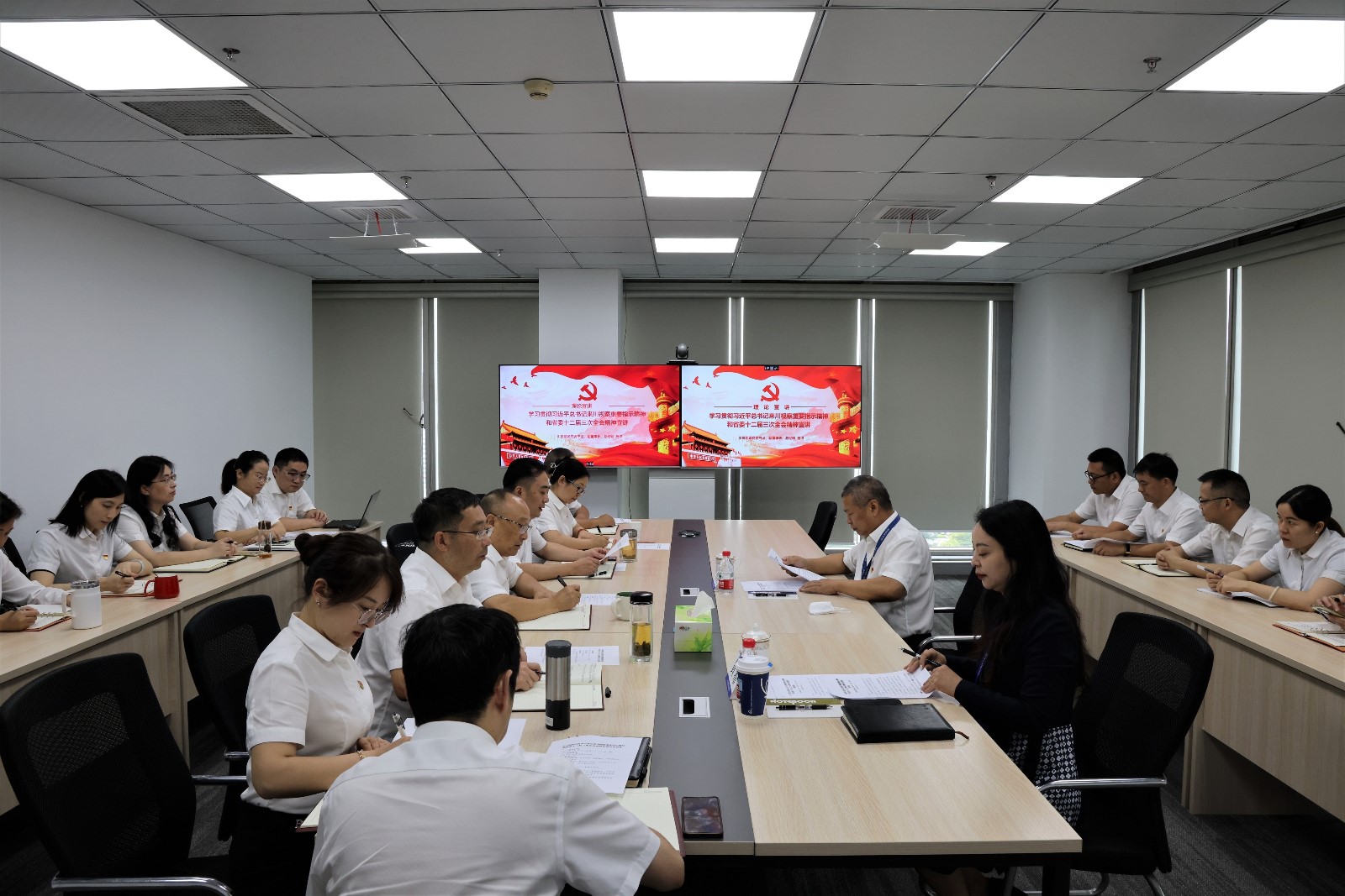 人生就是博能源党群事情部主任黄希;人生就是博电力向导班子成员,中层管理职员、党员代表、团员代表、民主党派代表加入专题宣讲。