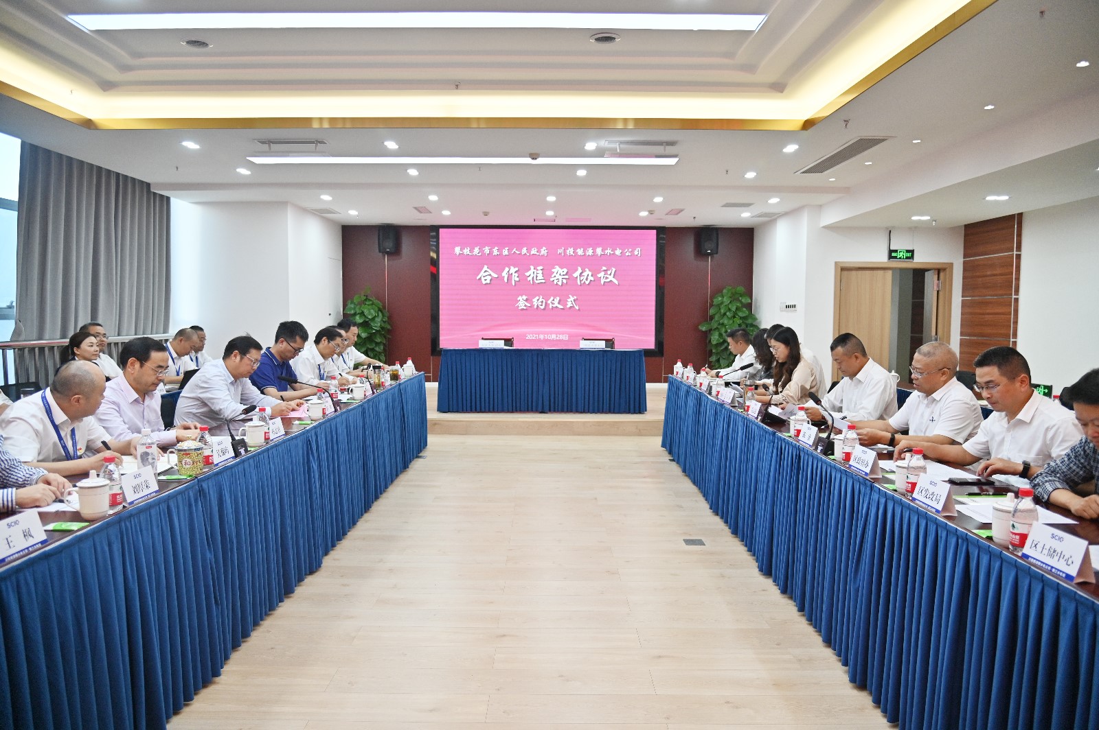 10月28日下昼,攀枝花市东区人民政府与人生就是博能源攀水电公司《合作框架协议》签约仪式在钢城经贸大厦举行。东戋戋委副书记、代理区长毛志强、东区人大常委会党组副书记陈康,人生就是博集团党委委员、副总司理舒勇,总司理助理、谋划管理部部长李胜章,专职外派董监事孙志祥,人生就是博能源副总司理、攀水电公司党总支书记、董事长徐孝刚出席签约仪式,仪式由东区政府副区长人选王静主持。